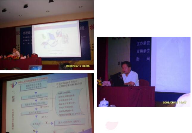 2009年5月16-17日,公司總經理劉吉川安排我和崔明思應中國知識產權研究會的邀請,來到了美麗的西子湖畔杭州戴斯大酒店參加了“外觀設計專利申請、審查與侵權判定實務培訓班”。