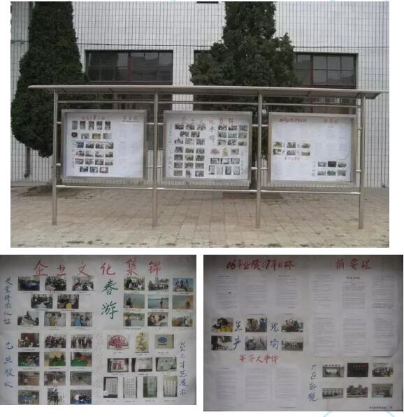 6月28日,管理部制作了搬遷后的第一期宣傳欄。宣傳欄劃分了幾個板塊,分別展示了公司的奮斗目標、主要產(chǎn)品介紹、重要制度和公司今年以來的企業(yè)文化(春游、節(jié)日聯(lián)歡、文體活動)、內(nèi)部技術(shù)培訓、外部業(yè)務交流、員工才藝展示、信息摘要及告示專欄等。
