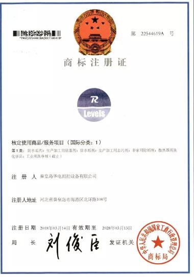 2017年1月,秦皇島華電測控設備有限公司正式將美國授權的rlevels商標向中國國家商標局提交申請注冊文件,經(jīng)商標局嚴謹審核認證,近日獲得商標注冊證:第22544618A,第1類,有效期為2018年03月14日至2028年03月13日。該商標的注冊成功,標志著公司已經(jīng)擁了41項自主知識產(chǎn)權。 秦皇島華電測控設備有限公司以誠信立業(yè),不斷開拓創(chuàng)新,經(jīng)過近二十年的發(fā)展,取得了多項榮譽,曾先后被授予“河北省高新技術企業(yè)”、“河北省著名商標”、“河北省科技型中小企業(yè)”、“河北省省級信用優(yōu)良企業(yè)”、“河北省誠信中小企業(yè)”、“河北省中小企業(yè)技術創(chuàng)新示范企業(yè)”、“河北省對標示范企業(yè)”、“河北省創(chuàng)新驅(qū)動發(fā)展示范企業(yè)”、“河北省企業(yè)文化建設示范單位”等榮譽稱號。 管理部 田秀芬報道