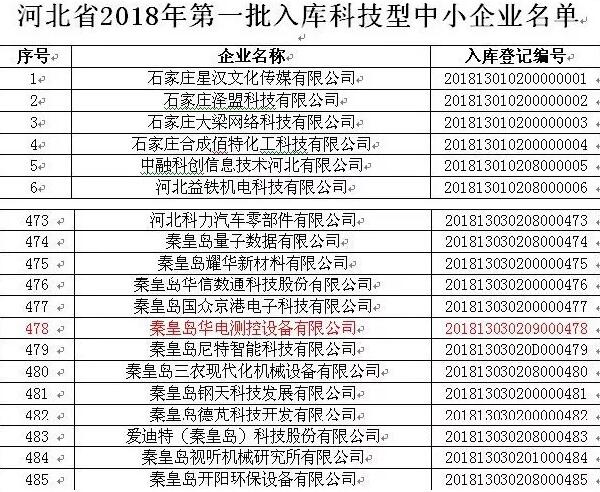 近日獲悉,秦皇島華電測控設備有限公司被納入河北省2018年第一批 “國家科技型中小企業(yè)信息庫”企業(yè)。根據(jù)《科技型中小企業(yè)評價辦法》(國科發(fā)政〔2017〕115號)和《科技型中小企業(yè)評價工作指引(試行)》(國科火字〔2017〕144號)要求,我公司通過公示,正式納入,入庫登記編號為 201813030209000478。