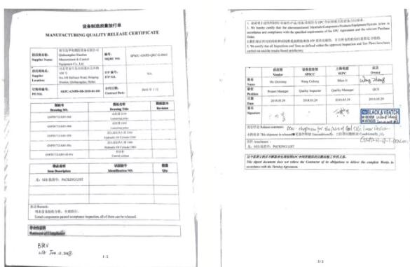 6月12日,華電測控供菲律賓GNPower Dinginin2×660MW燃煤電廠1號機組7套煤倉疏松機設備出廠發(fā)貨。設備出廠前經(jīng)過上海電建委托方法國BV、上海電建監(jiān)造部、業(yè)主委托方美國BLACK & VEATCH進行出廠檢驗,驗收合格予以出廠。