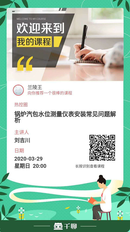 2018年12月由劉吉川先生在【熱控圈公眾號(hào)】直播間開講的《火力發(fā)電廠汽包水位測(cè)量技術(shù)》實(shí)時(shí)在線收聽人數(shù)達(dá)到2000多人,聽眾反饋強(qiáng)烈,真實(shí)反映了這一領(lǐng)域的電力技術(shù)人員渴望新知識(shí)、渴望提升能力的迫切意愿。應(yīng)廣大電力技術(shù)人員邀請(qǐng),劉吉川總經(jīng)理繼續(xù)為大家進(jìn)行“鍋爐汽包水位測(cè)量系統(tǒng)系列講座之儀表安裝常見(jiàn)問(wèn)題解析”的直播,滿滿的干貨!直播結(jié)束后仍將會(huì)有微課錄像提供給廣大技術(shù)人員分享學(xué)習(xí)。歡迎大家前來(lái)!??!