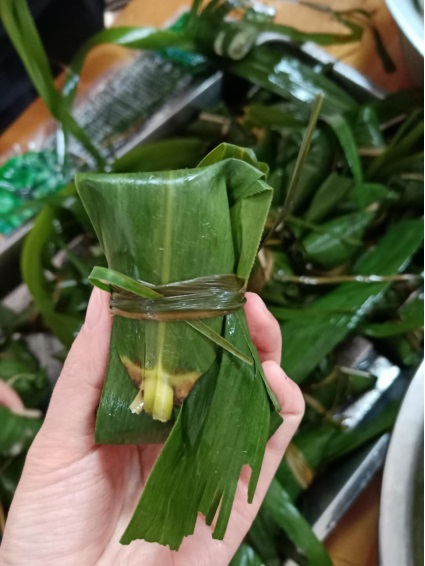 經(jīng)過(guò)了兩個(gè)小時(shí)的努力,大家包完了15斤糯米的粽子??粗雷由细魇礁鳂拥聂兆?,大家的臉上都洋溢著快樂(lè)的笑容。