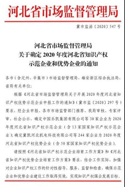 2020年4月,河北省市場(chǎng)監(jiān)督管理局組織申報(bào)2020年度河北省知識(shí)產(chǎn)權(quán)示范企業(yè)和優(yōu)勢(shì)企業(yè),我公司收到通知后,第一時(shí)間組織材料,填寫申請(qǐng),由區(qū)、市知識(shí)產(chǎn)權(quán)局推薦、省局審核、專家評(píng)審、社會(huì)公示的流程,近日獲悉華電測(cè)控獲評(píng)2020年度河北省知識(shí)產(chǎn)權(quán)優(yōu)勢(shì)企業(yè)!