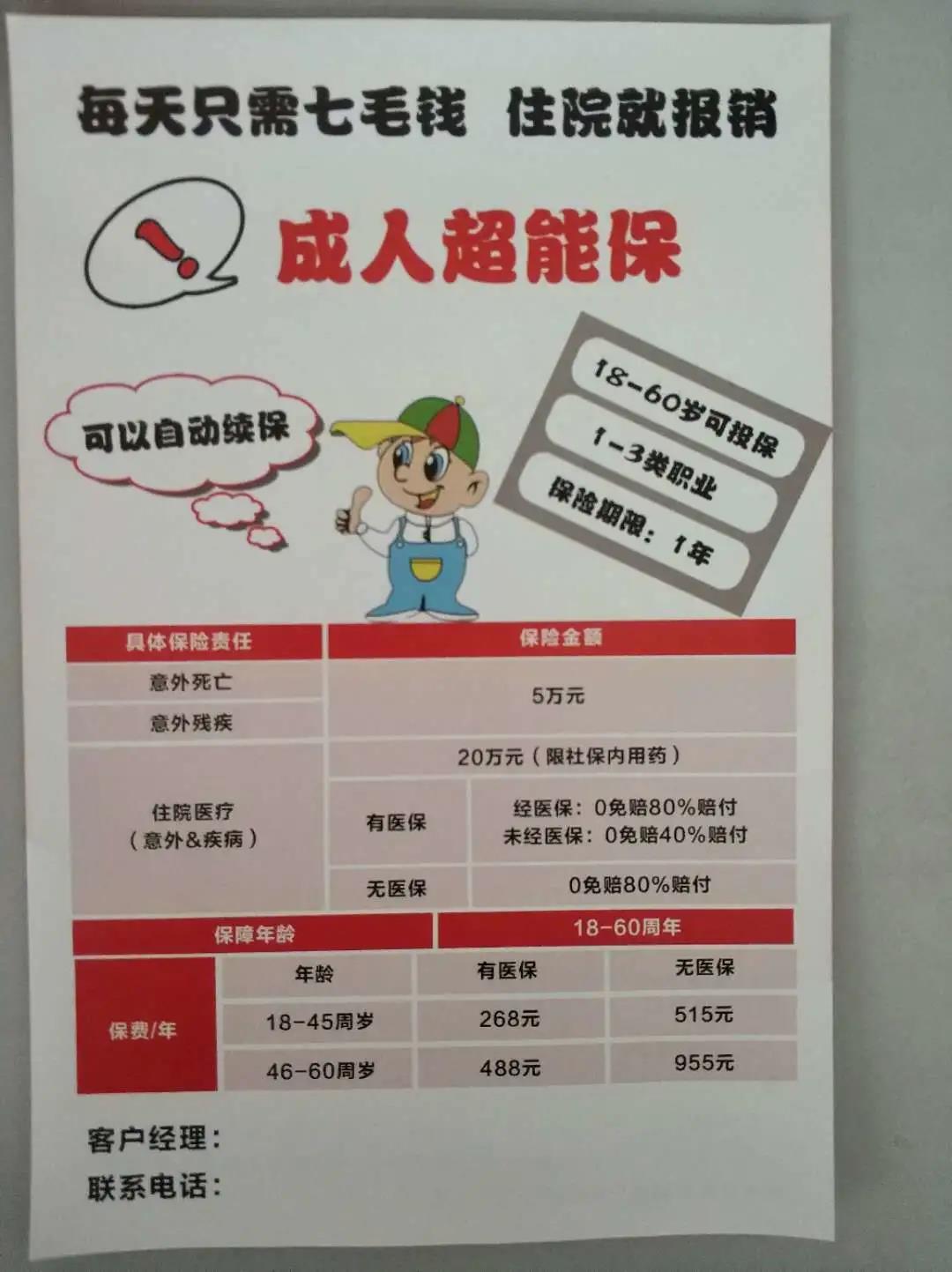 申輝經(jīng)理還特別推薦:成人超能保。住院醫(yī)療(意外或疾?。?門檻起付。