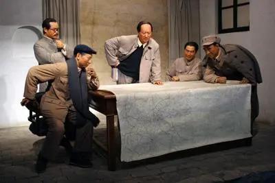 西柏坡陳列館館名由鄧小平同志題寫。其建筑面積6100平方米,共12個展室。展覽內(nèi)容以解放戰(zhàn)爭后期中共中央在西柏坡時期的活動為主線,運(yùn)用了大量的文物、照片和歷史資料,輔之于繪畫、雕塑、景觀、幻影成像、半景畫等高科技手段來展現(xiàn)中共中央在西柏坡的偉大革命實踐。