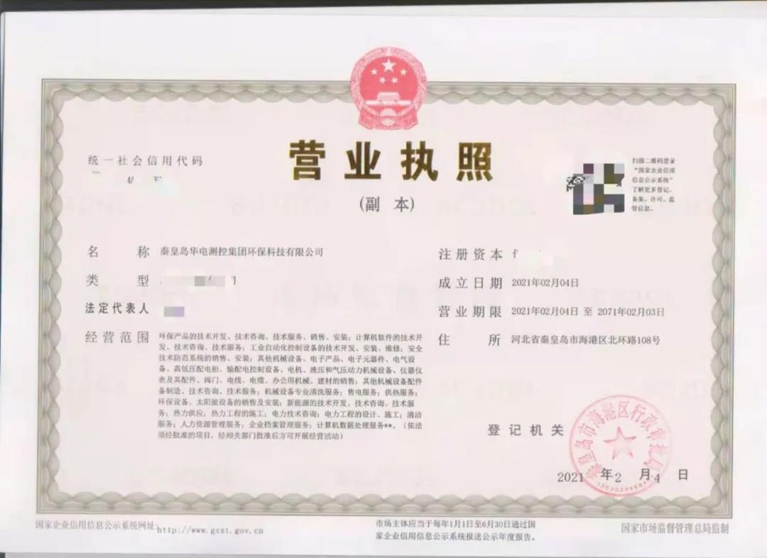 【企業(yè)動態(tài)】熱烈慶祝秦皇島華電測控集團環(huán)保科技有限公司注冊設(shè)立