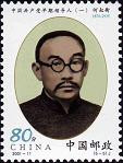 郵票是國家的名片。紀念郵票開設“中國共產黨早期領導人”系列,始自2001年,當時是作為建黨80周年紀念活動的一項重要宣傳內容。發(fā)行這個系列郵票的目的,不僅是重溫歷史,總結經驗;也是弘揚光榮傳統(tǒng),教育激勵后人。根據已知的資料,郵票上的這些歷史人物,都是選取的上世紀二十年代革命戰(zhàn)爭時期的“早期”形象,目光炯炯,英姿颯爽,有著獨具的個性氣質和鮮明的時代特征。他們的英雄故事被廣為傳頌,他們的業(yè)績、他們的思想、他們的奮斗精神,值得后輩們很好地學習和發(fā)揚。他們的不凡經歷綜合起來,實際上就是一部鮮活的黨的早期革命斗爭史。發(fā)行紀念郵票,的確是非常有效的紀念方式之一。因此,國家郵政局于2001年6月28日發(fā)行《中國共產黨早期領導人(一)》郵票一套5枚。中國共產黨早期組織的創(chuàng)建者和早期領導人王燼美、趙世炎、鄧恩銘、蔡和森、何叔衡,就是這些千千萬萬個共產黨員中的杰出代表。這套郵票由王虎鳴設計,每枚面值80分。上一期我們通過郵票學習了一大代表王盡美的事跡,本期重點介紹黨史中的一大代表,為革命事業(yè)犧牲的先烈鄧恩銘、何叔衡。