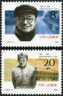 張聞天,曾經(jīng)是中國(guó)共產(chǎn)黨的一把手。國(guó)家郵政部門(mén)為了表達(dá)對(duì)張聞天同志的懷念之情,于1990年8月30日發(fā)行的,志號(hào)為J.170的紀(jì)念郵票?!稄埪勌焱菊Q生九十周年》郵票全套2枚,分別選用了張聞天的單色素描頭像、半身像。設(shè)計(jì)者:殷會(huì)利。