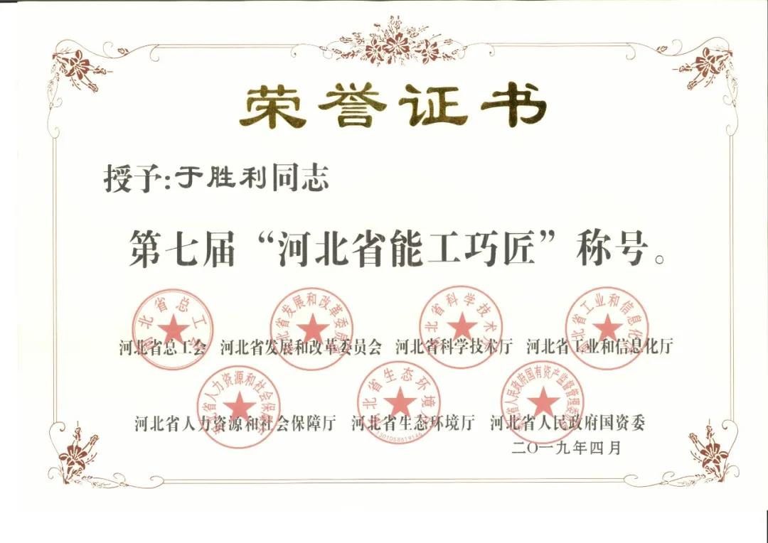 從剛參加工作的技術(shù)新人到擁有豐富經(jīng)驗的“總工”,于勝利一路走來,經(jīng)歷很多。作為一名共產(chǎn)黨員,他時刻不忘初心,時刻發(fā)揮黨員的先鋒帶頭作用,帶領(lǐng)班組成員提高創(chuàng)新研發(fā)技能,在崗期間,他主持研發(fā)的產(chǎn)品近五年已獲得兩項發(fā)明專利、兩項實用新型專利、一項美國發(fā)明專利,2016年榮獲第二屆“中國創(chuàng)翼”青年創(chuàng)業(yè)創(chuàng)新大賽銀翼獎,2017年被評為第五屆秦皇島市金牌工人,2018年榮獲河北省職工技術(shù)創(chuàng)新成果展演銀獎,2019年榮獲河北省第七屆能工巧匠稱號,2020年榮獲秦皇島市勞動模范等多項榮譽,對于未來于勝利有著更深的思考和奮斗的目標。