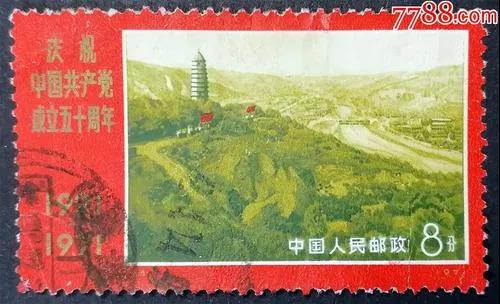 在慶祝中國共產(chǎn)黨成立四十周年和五十周年的紀(jì)念郵票里,都有延安寶塔山的圖案。