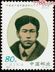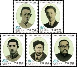 為紀(jì)念在解放全中國的革命事業(yè)中嘔心瀝血,英勇戰(zhàn)斗,壯烈犧牲的中國共產(chǎn)黨的無數(shù)英雄兒女,中國郵政在中國共產(chǎn)黨建黨80周年之際,發(fā)行了《中國共產(chǎn)黨早期領(lǐng)導(dǎo)人(一)》紀(jì)念郵票1套5枚,表達(dá)對(duì)革命先輩們的崇高敬仰。這是2001年6月28日發(fā)行的紀(jì)念郵票,設(shè)計(jì)者是王虎鳴。