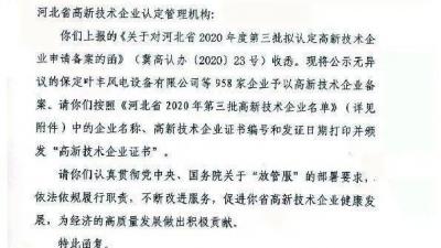 【企業(yè)動態(tài)】華電測控第六次通過高新技術企業(yè)重新認定” 2021-02-07近日,秦皇島華電測控設備有限公司收到了全國高新技術企業(yè)認定管理工作領導小組辦公室下發(fā)的《關于河北省2020年第三批高新技術企業(yè)備案的復函》(國科火字〔2020〕243號〕文件,公司第六次順利通過高新技術企業(yè)認定More