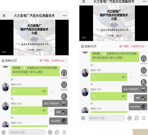 直播課程通過語音與PPT相結(jié)合,向大家詳細(xì)的講解了汽包水位測量系統(tǒng)技術(shù)規(guī)程的必要性、汽包水位測量系統(tǒng)改造必要性、汽包水位測量系統(tǒng)的問題及技術(shù)難點(diǎn)、如何解決、改造效果。為大家分享經(jīng)驗,直播最后20分鐘劉吉川總經(jīng)理現(xiàn)場為熱控技術(shù)人員進(jìn)行答疑解惑,解決了他們心中的疑慮,得到了技術(shù)人員的積極響應(yīng)和高度評價。