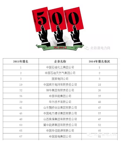 【榜單】2015中國企業(yè)500強(qiáng):電力企業(yè)幾家上榜?