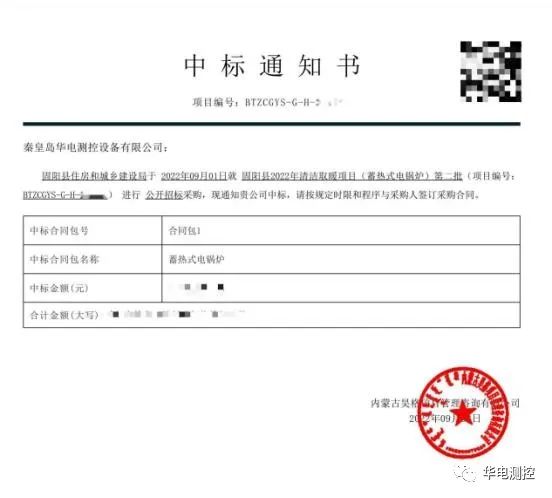 中標(biāo)喜訊!我公司成功中標(biāo)固陽縣2022年第二批清潔取暖項目(蓄熱式電鍋爐)