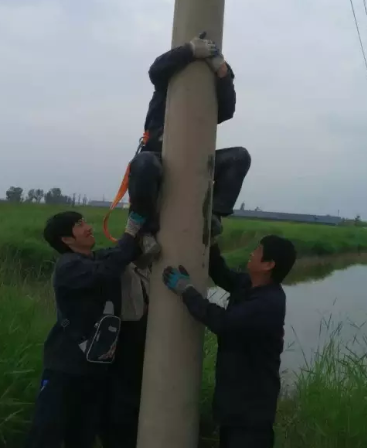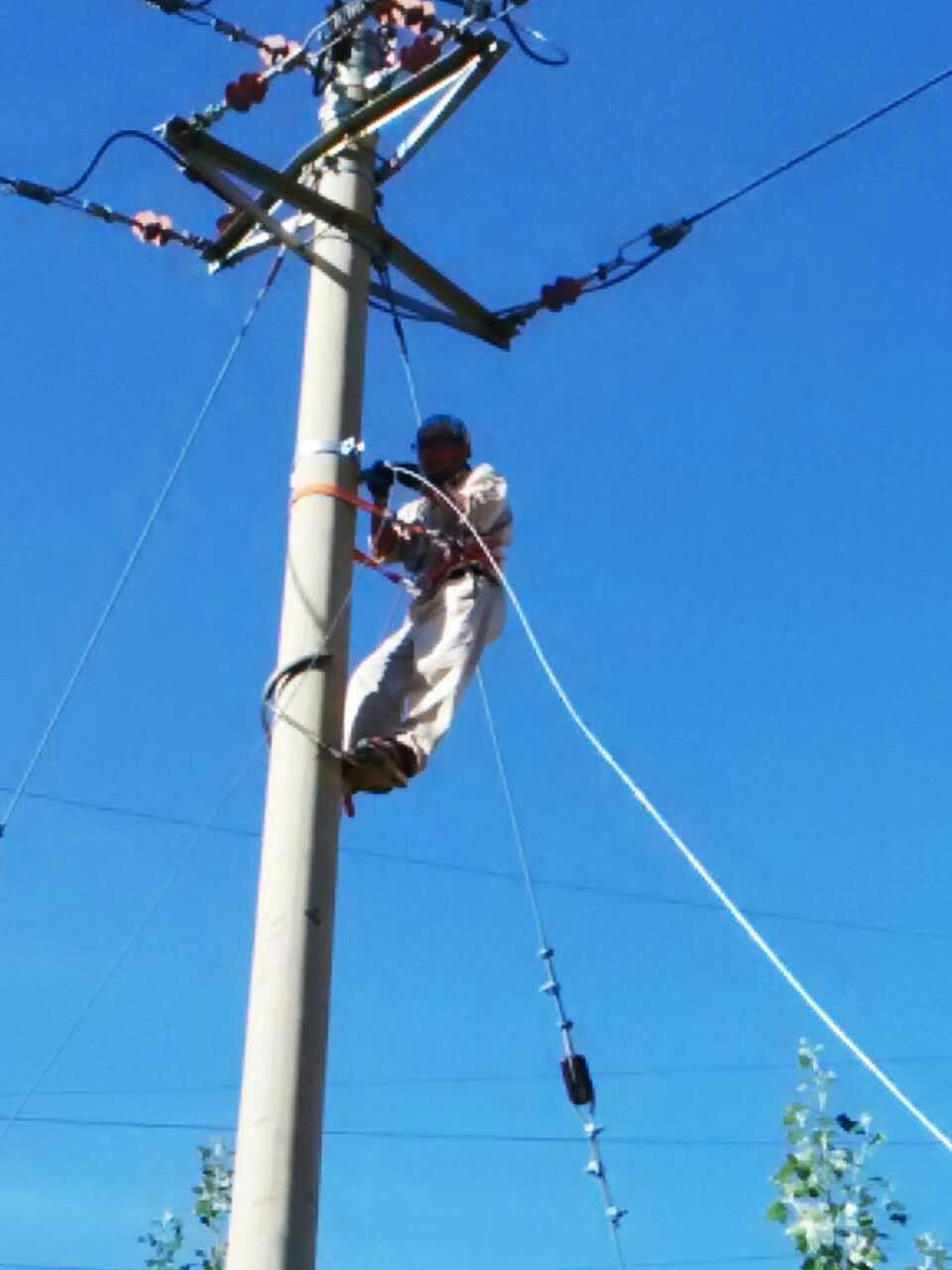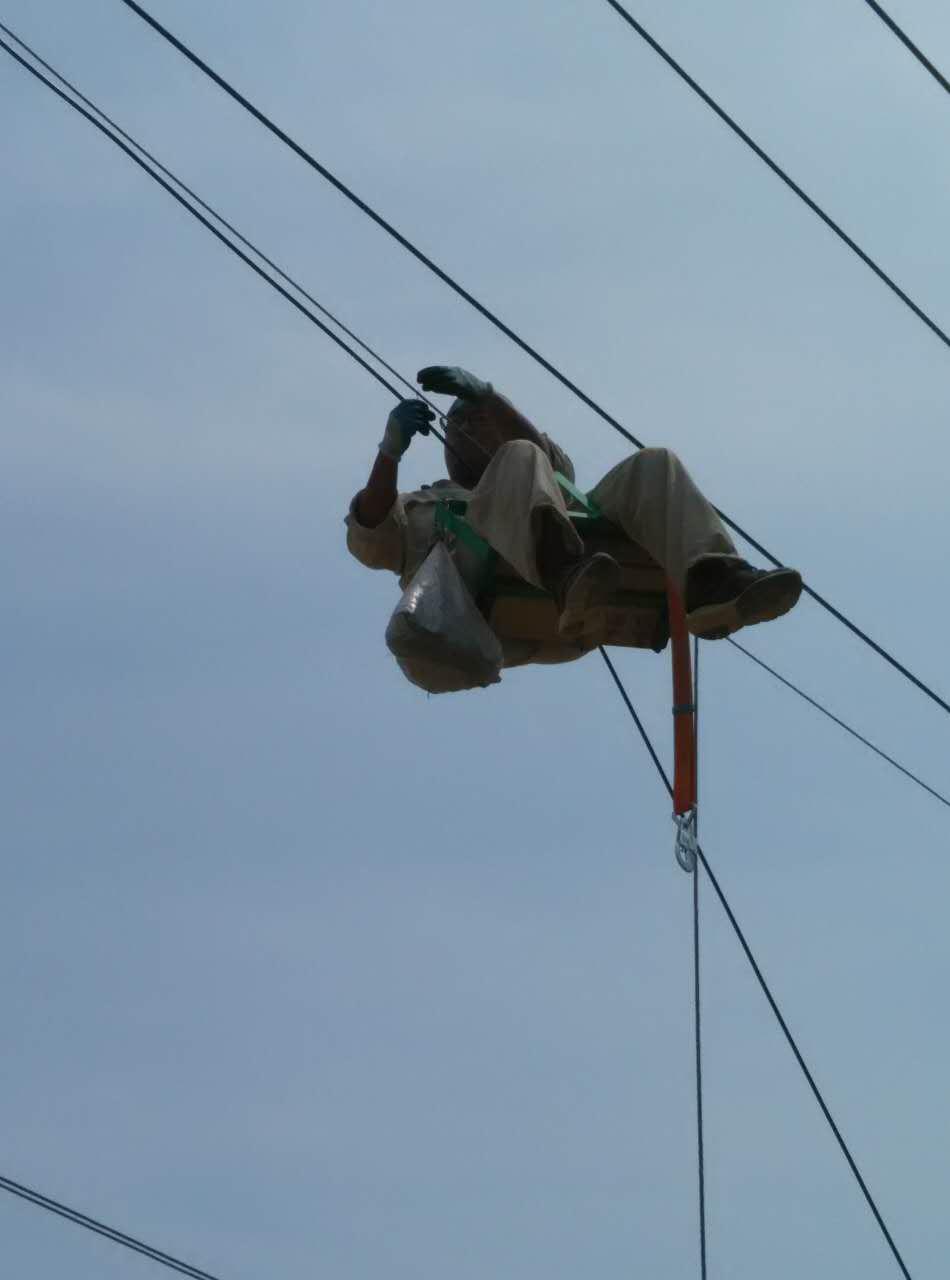 在這次工程中,最為辛苦的就是“倒桿子”了,寧愿多掛幾個(gè)夾子也不愿倒桿子,因?yàn)槊康挂淮味紩?huì)耗費(fèi)大量的體力,讓人汗流浹背、氣喘吁吁,施工人員相當(dāng)于穿著一件40斤左右的鐵褲衩 在一人粗細(xì)的桿頂左右移動(dòng)工作。最讓人煩惱的是當(dāng)小車(chē)上的人員處于兩根電線桿之間的位子時(shí)鋼纜滑滑小車(chē)滑輪外,需要耗費(fèi)極大的體力才能將它重新弄好,由于處于那時(shí)我們用力會(huì)無(wú)處生根,只能用撬棍一點(diǎn)一點(diǎn)撬,一弄就得一個(gè)小時(shí)左右,上不去下不來(lái),那過(guò)程,真不是一般的“酸爽”!